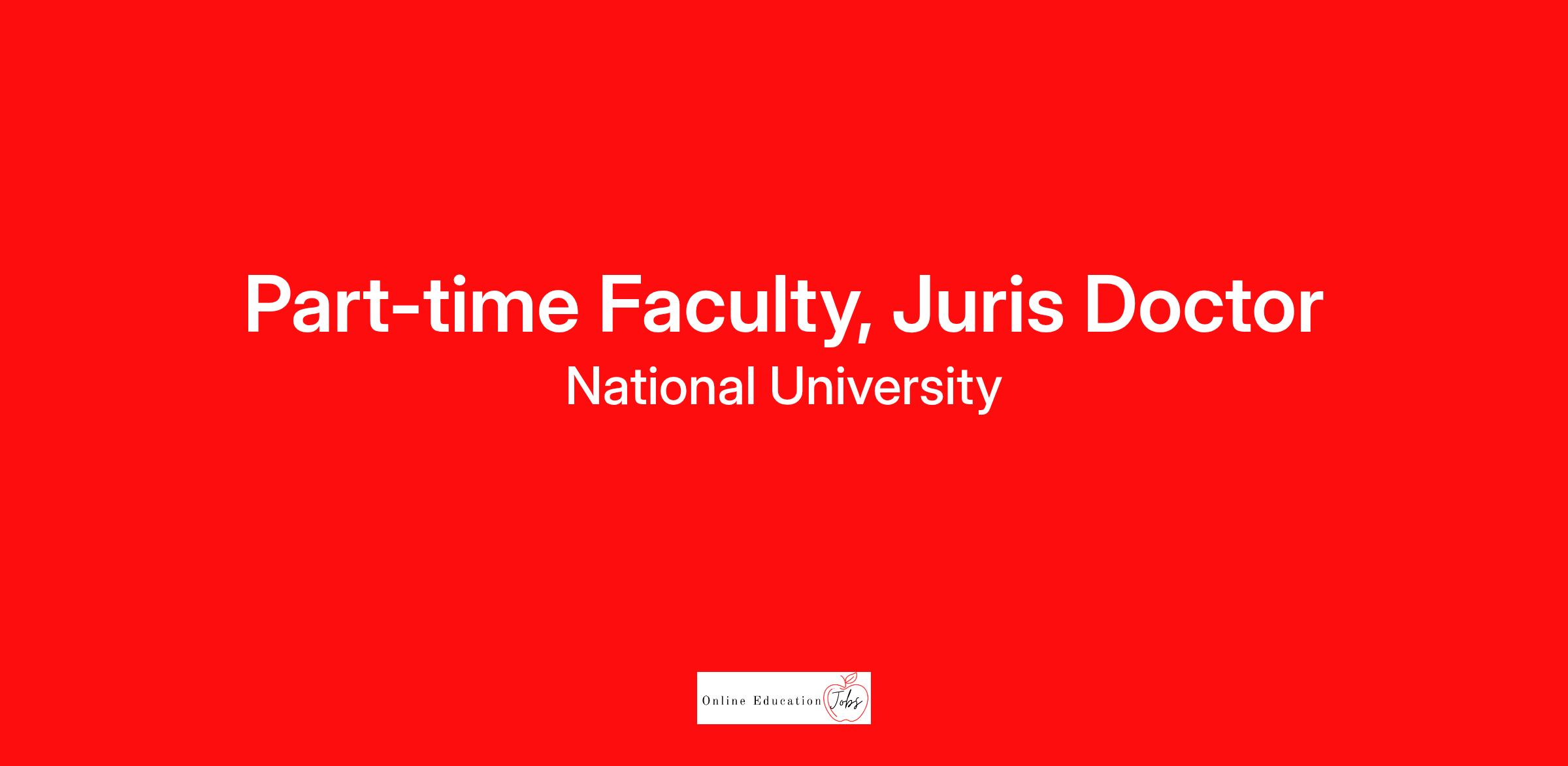 The School of Law, in the College of Law & Public Service at the National University, invites applications for part-time JD faculty. The successful candidate will have a demonstrated record of or potential for excellence in teaching in their field and a commitment to serving the university’s diverse adult student body. The successful candidate will have the potential for a commitment to serving the university’s diverse adult student body. This position primarily works closely with the Academic Program Director and other faculty within the program and contributes to ensuring program quality, student engagement, and success. In particular, applicants must have expertise gained from the practice of law in one or more of the following areas: Torts, Contracts, Civil Procedure, Legal Research & Writing, Criminal Law, Employment Law, Family Law, Administrative Law, Opening a Law Office.