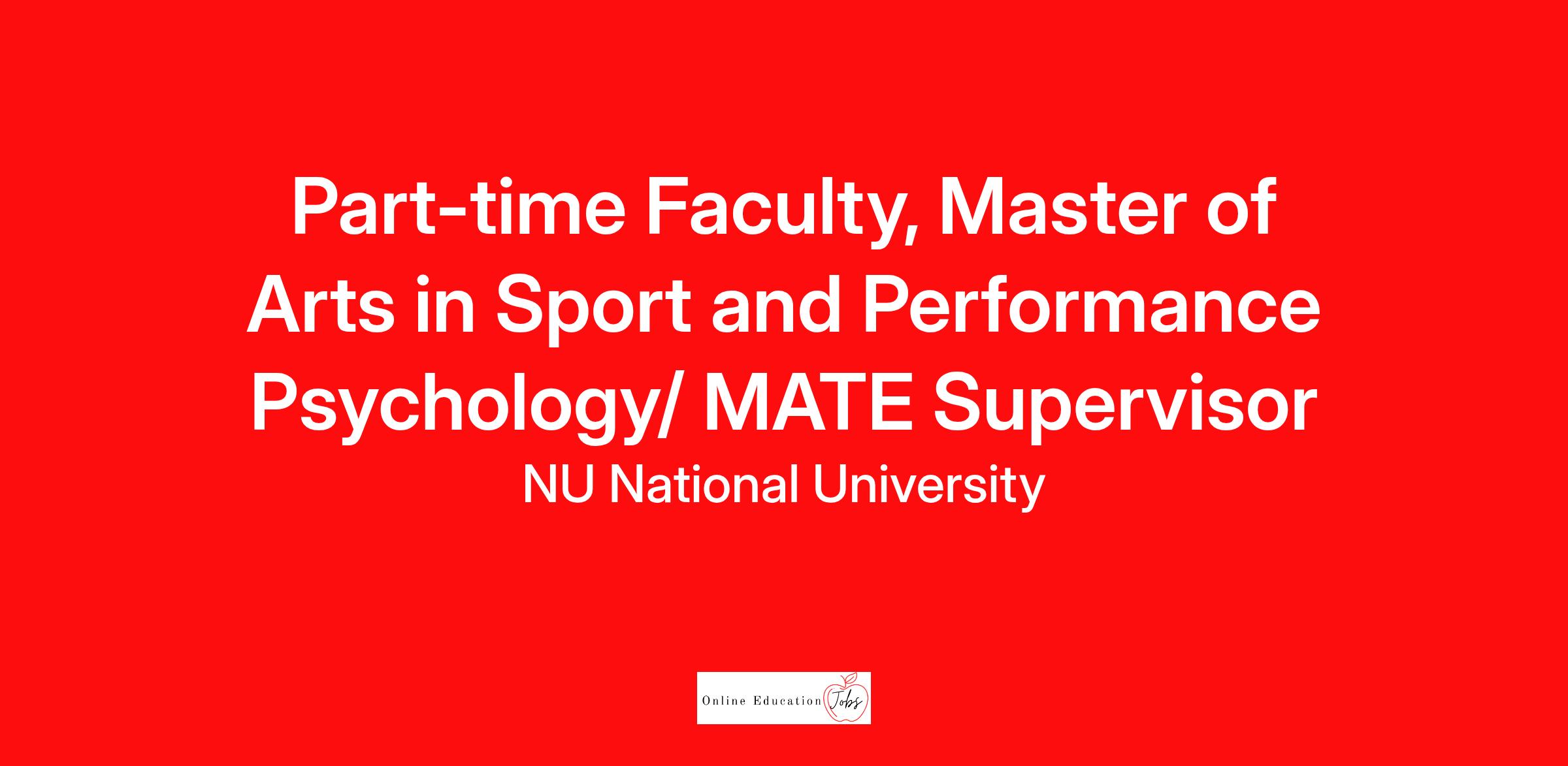 Part-time Faculty: Master of Arts in Sport and Performance Psychology/MATE Supervisor