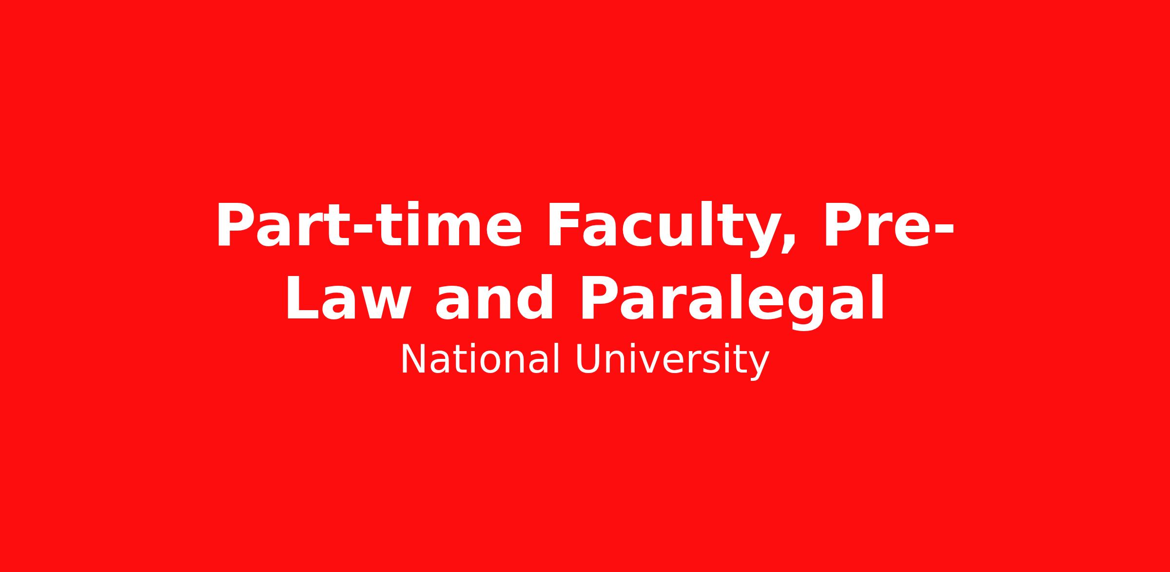 The School of Law, in the College of Law & Public Service at the National University, invites applications for Part-time Pre-Law and Paralegal faculty. The successful candidate will have a demonstrated record of or potential for excellence in teaching in their field and a commitment to serving the university’s adult student body. This position primarily works closely with the Academic Program Director and other faculty within the program and contributes to ensuring program quality, student engagement, and student success. Primary responsibility is to engage students, teach doctrine and black-letter law, conduct weekly synchronous sessions, offer excellent feedback, and inspire students to achieve course and program outcomes relevant to the core discipline.