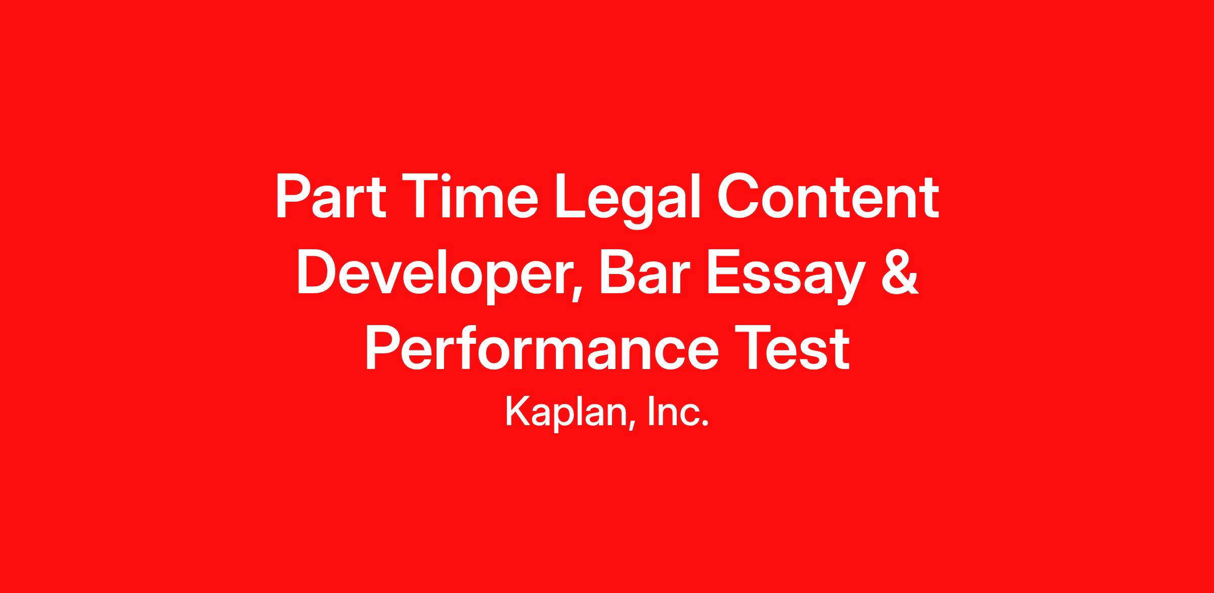 The Part Time/Remote Legal Content Developer, Bar Essay & Performance Test will focus on the development and editing of Bar Essays and/or Performance Tests. This position demands absolute legal accuracy, exceptional attention to detail, and strict adherence to confidentiality standards.