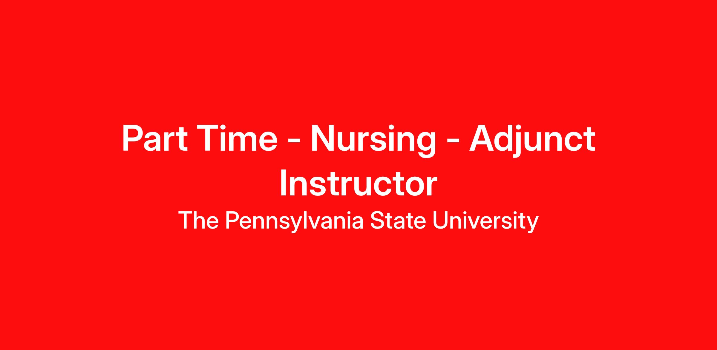 The Ross and Carol Nese College of Nursing at The Pennsylvania State University invites applications for Adjunct Instructor in the Bachelor of Science in Nursing program, RN to BSN option offered through World Campus.