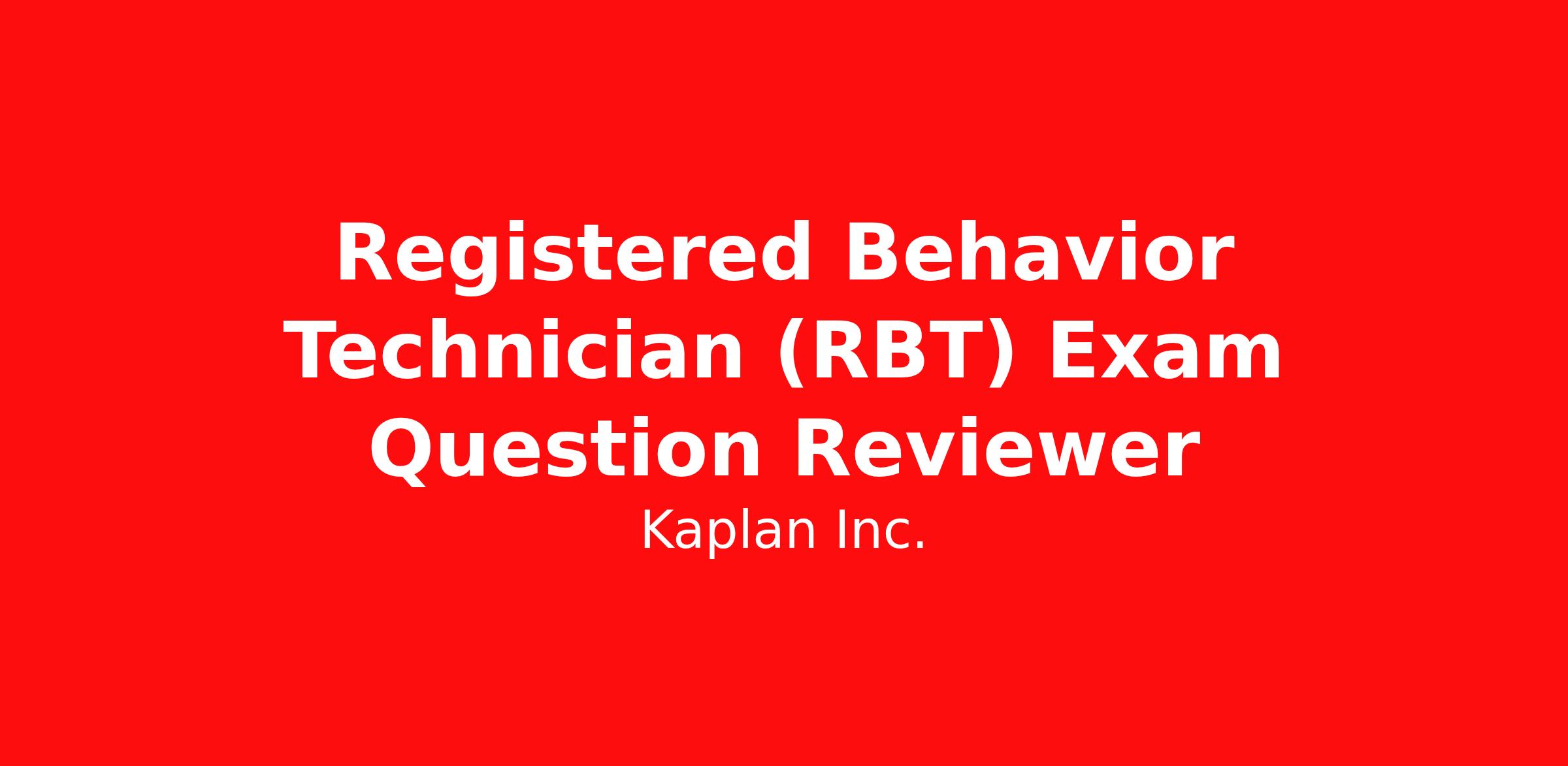 Kaplan is seeking a Registered Behavior Technician (RBT) Subject Matter Expert to join us as a Contractor to contribute to the development of a new quiz bank for the RBT Exam. This is a remote and asynchronous opportunity, allowing you the flexibility to complete the work outside of standard business hours.