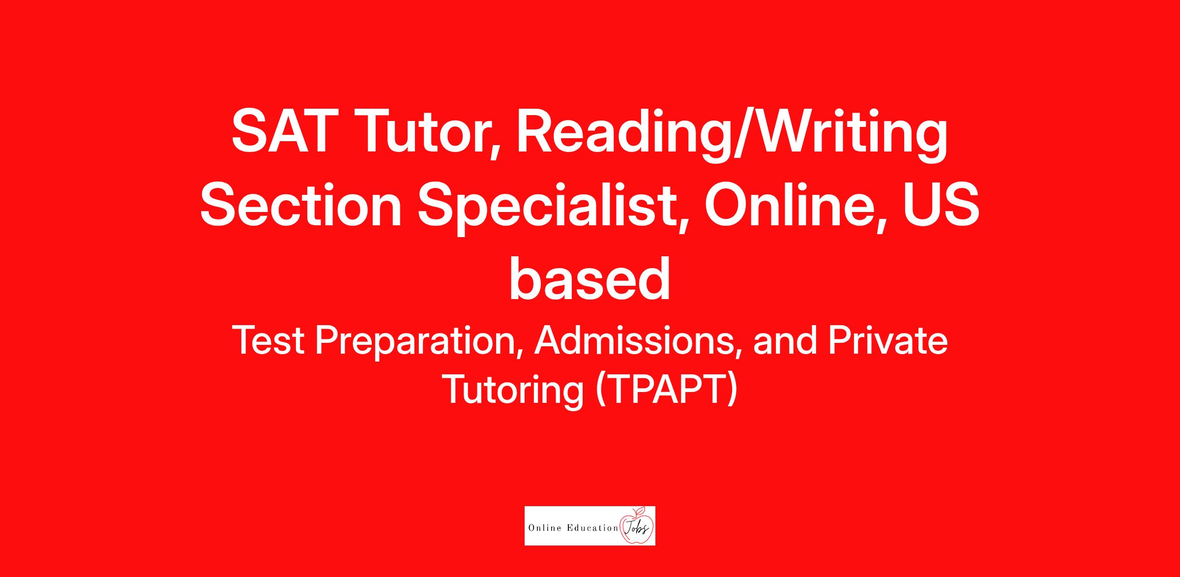 Requirement: Bachelor's degree and at least 2 years of SAT RW experience or TPAPT Tutor Certification