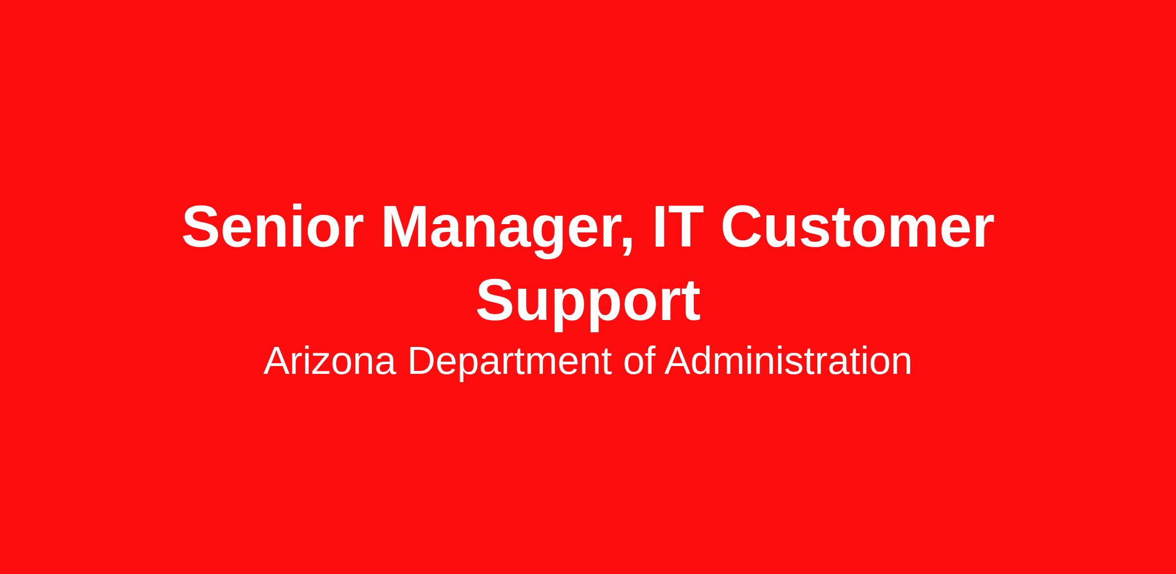 The Senior Manager, IT Customer Support leads and manages all aspects of customer-facing IT services for the Arizona Department of Revenue (ADOR). This includes overseeing the IT Service Desk, desktop support operations, and client device management across the agency. Responsible for driving continuous improvement, maturing IT service management (ITSM) processes, and ensuring IT customer support services are highly efficient, reliable, and directly integrated with the CISO's security initiatives to protect sensitive taxpayer data and agency assets. This position has one supervisory direct report who oversees a team size of 7 to 8 individual contributors in IT Service Desk and System Administration roles.