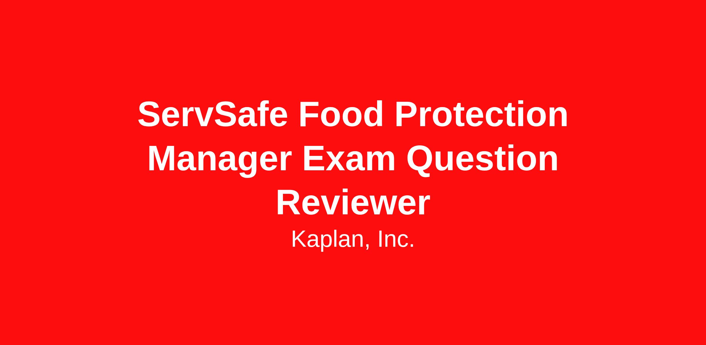 Project Description Kaplan is seeking a ServSafe Food Protection Manager Exam Subject Matter Expert to join us as a Contractor to contribute to the development of test-like exam questions. This is a remote and asynchronous opportunity, allowing you the flexibility to complete the work outside of standard business hours.