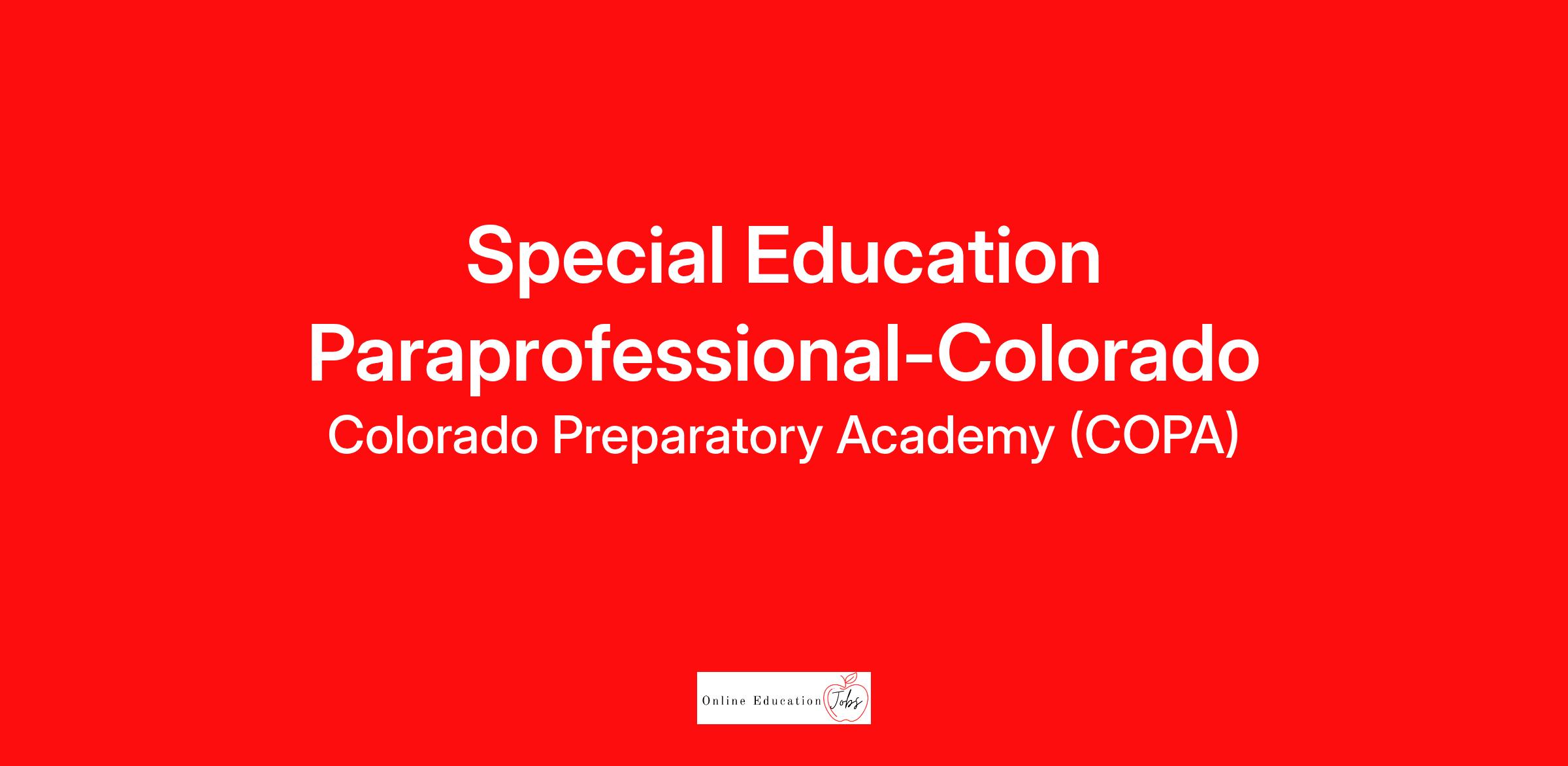 Required Certificates and Licenses: Colorado Paraprofessional Certification, experience with Special Education preferred