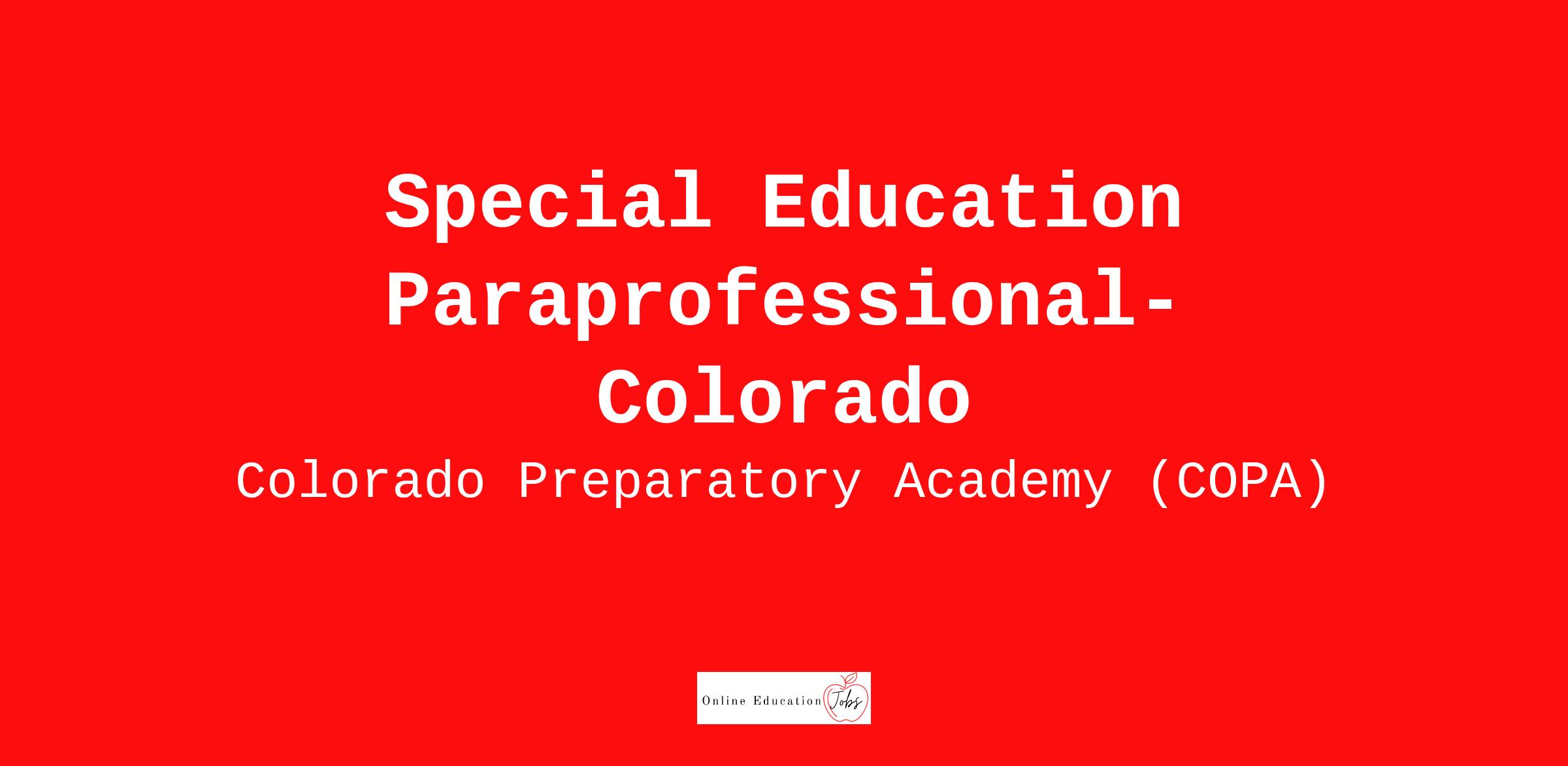 Required Certificates and Licenses: Colorado Paraprofessional Certification, experience with Special Education preferred