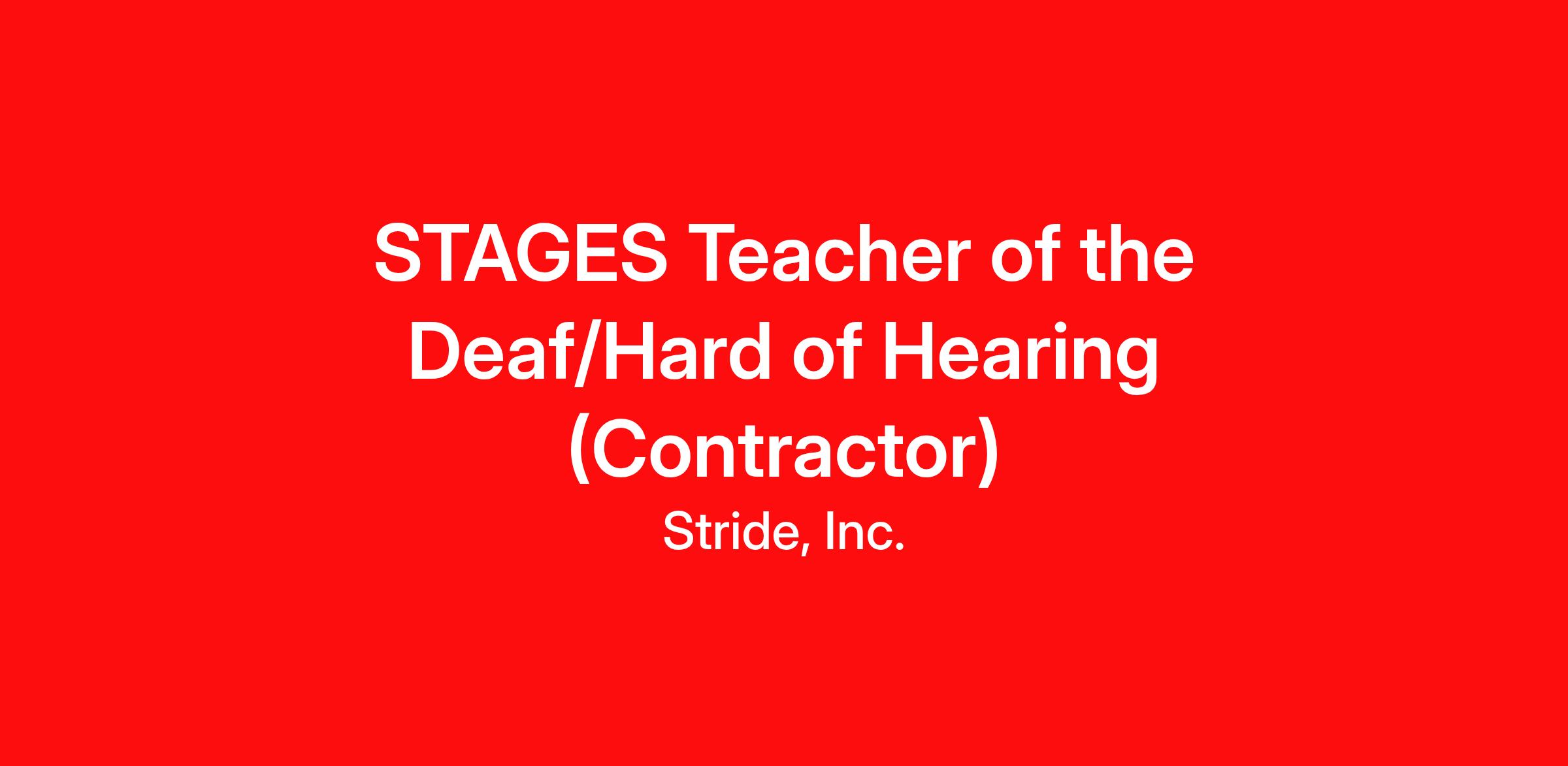 The STAGES Teacher of the Deaf and Hard of Hearing (DHH) -CONTRACTOR is a state certified teacher responsible for providing services to students who are deaf or hard of hearing (D/HH). The scope of services and supports provided by the teacher will be determined by the students’ Individualized Education Plans (IEPs). The teacher serves as a collaborative member of a team that supports students identified as D/HH in a virtual academic environment. The Teacher of the Deaf and Hard of Hearing (DHH) - Contractor may be asked to obtain licensure in multiple states and serve students across multiple schools.