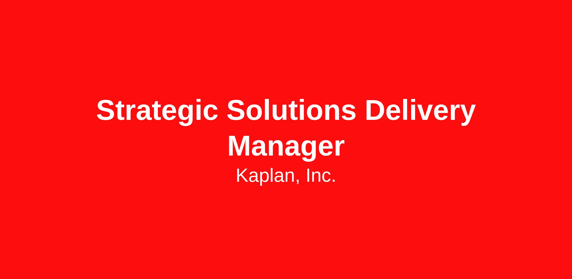 Strategic Solutions Delivery Manager
