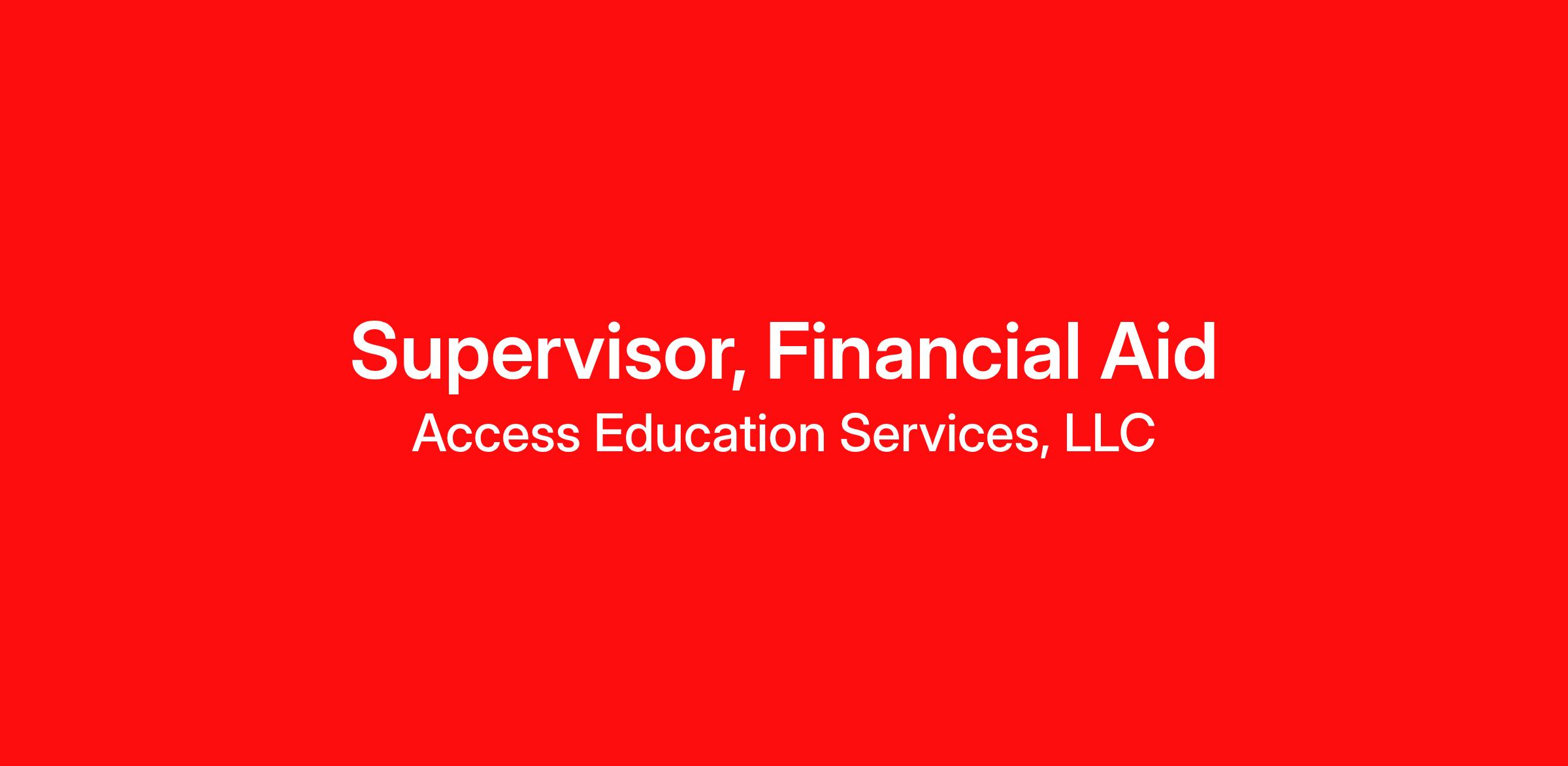 Supervisor, Financial Aid