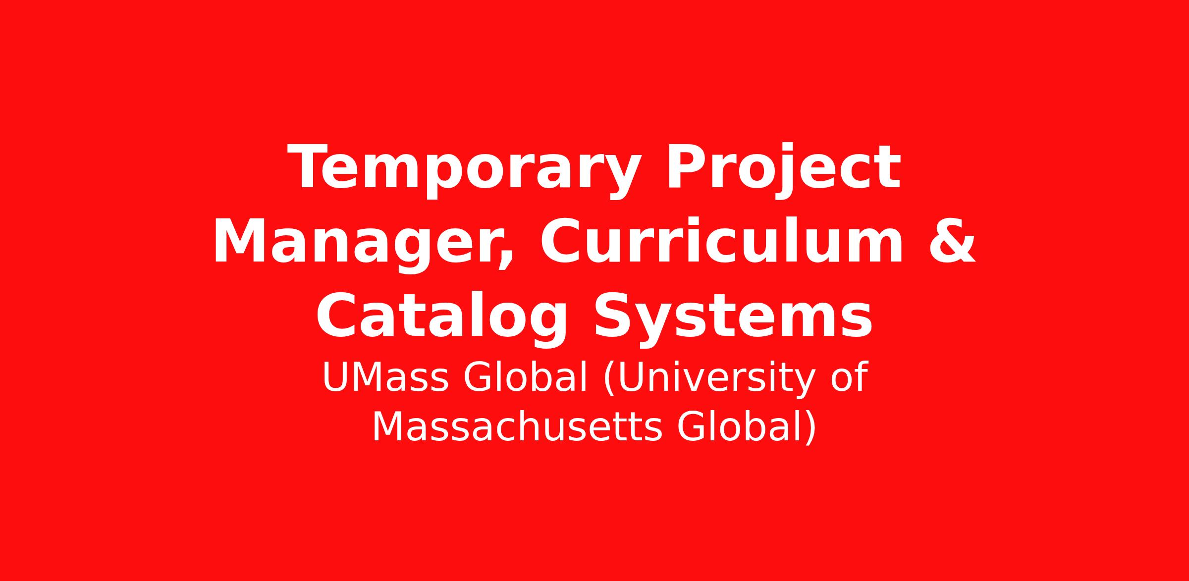 Temporary Project Manager, Curriculum & Catalog Systems