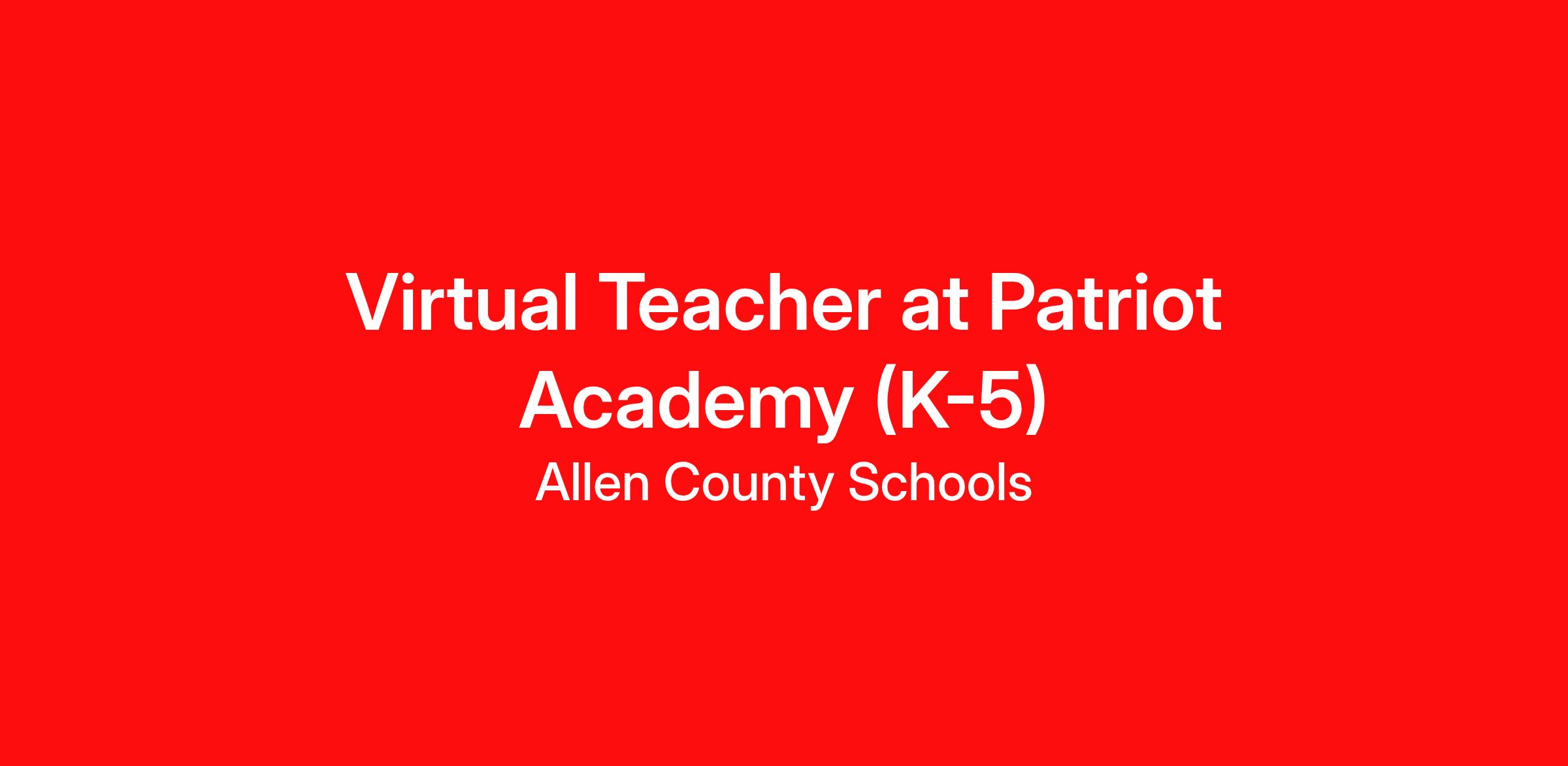 Immediate Supervisor: Director of Patriot Academy, Chief Academic Officer